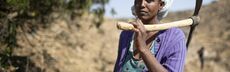 Bäuerin Freweyni, Mutter von sieben Kindern, kämpft gegen die Dürre:„Wir sind alle sehr glücklich über diese Arbeit, die uns Geld bringt, um uns zu ernähren und vor allem unser Leben hier verbessert, weil wir das Wasser auffangen.“